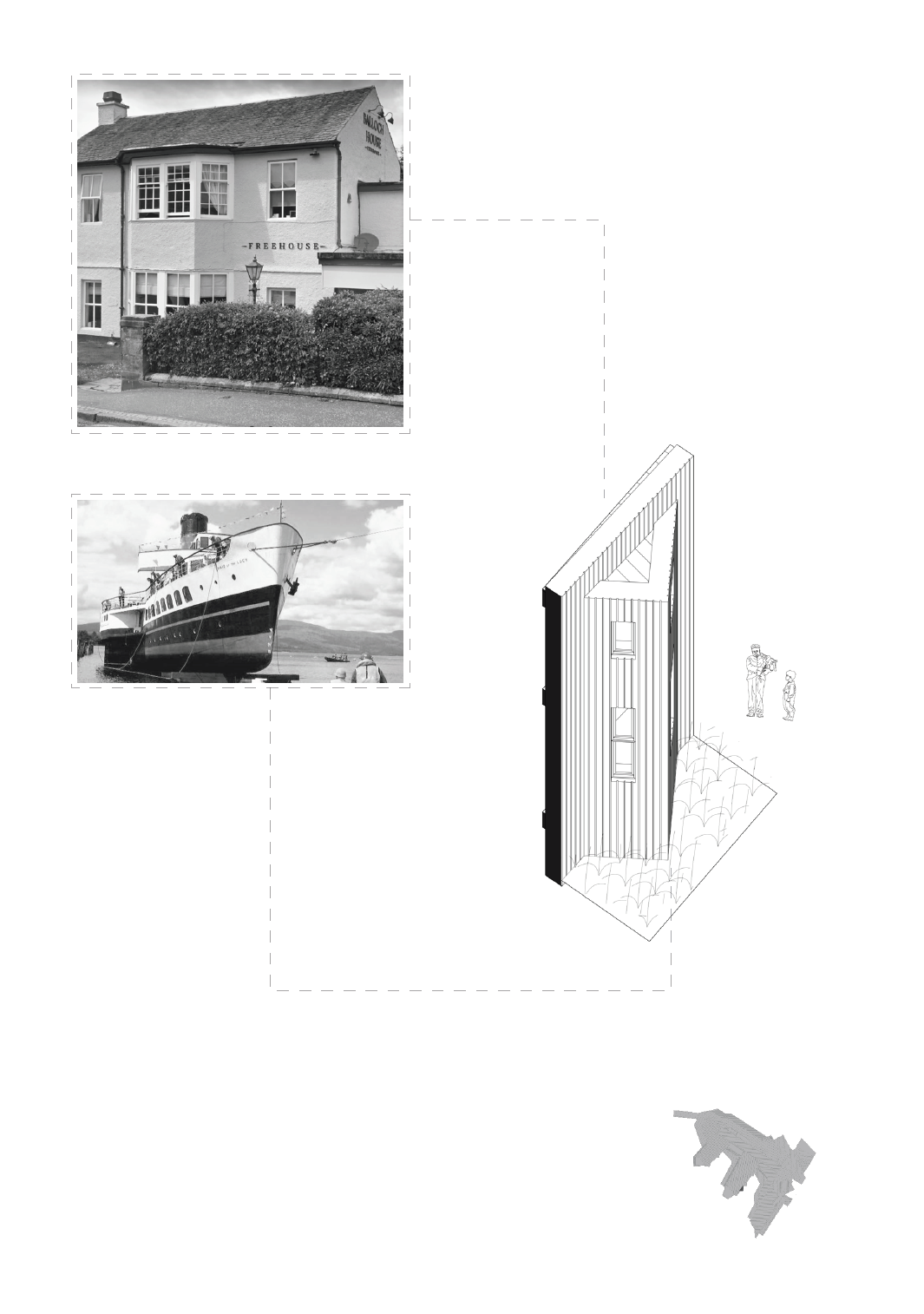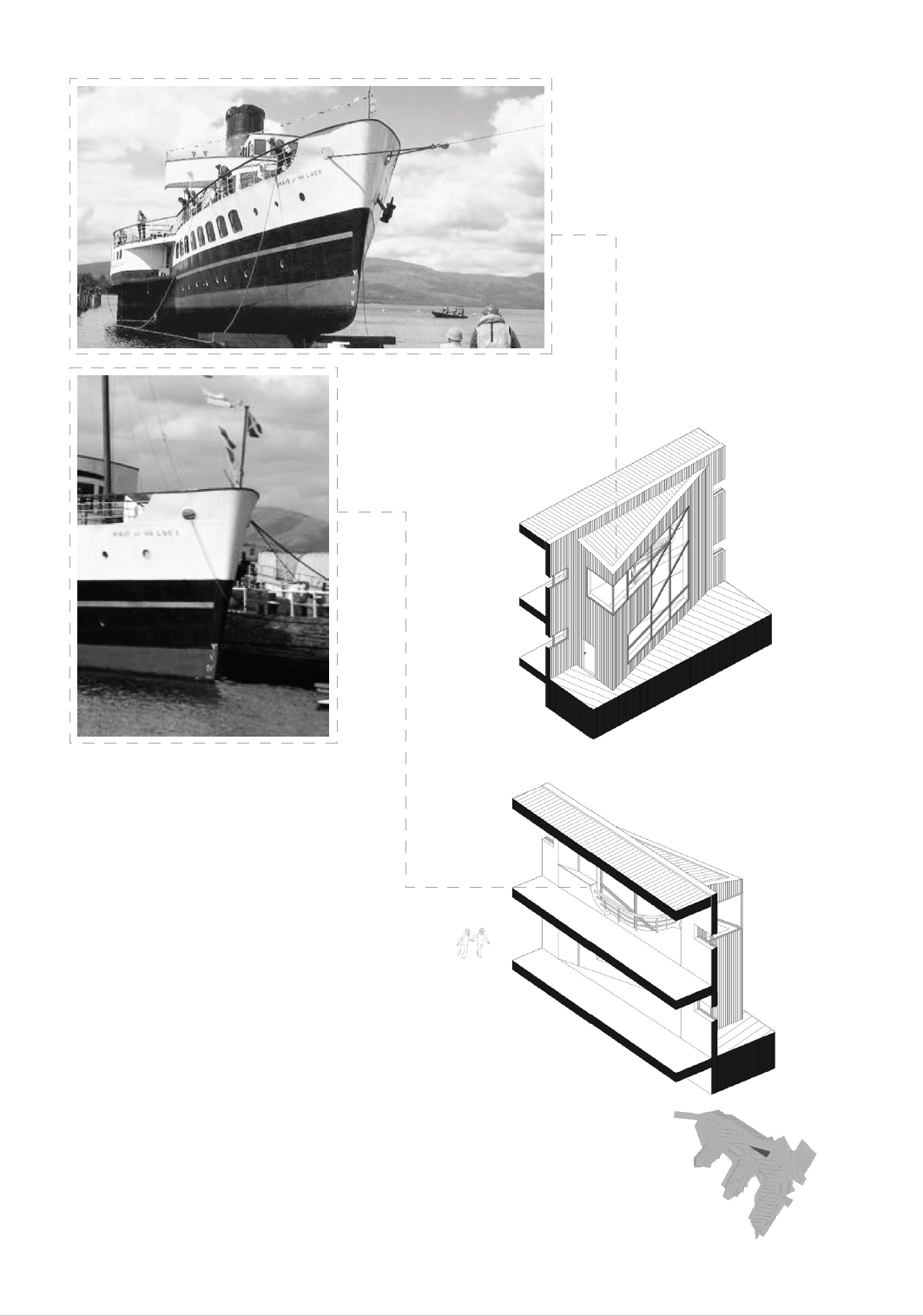 AMBR is a project steeped in the concern of the user, born from the angst of being a foreigner. The design process sought to place agency firmly in the community it was designed to serve; being both the children involved in the charity Big Noise and the residents of Balloch. The concerns of paying homage to the existing, whilst also providing a building fit for purpose that held landmark qualities were resolved through a visual dialogue with residents in Balloch and discussions with children. The final design represents a series of abstractions, manipulations and at times blatant replications of the existing surrounds, that exudes a playful compilation that is fitting of both the children who will inhabit the site and the town of Balloch itself.